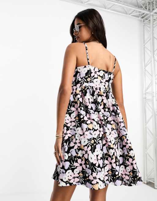 Pieces Mouwloze mini jurk in fijne zwarte bloemenprint ASOS