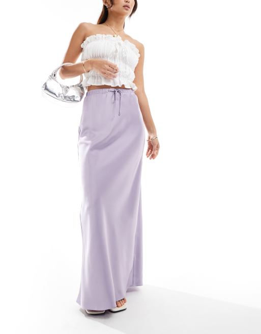 Lila satijnen rok best sale, ASOS DESIGN Schuingesneden satijnen maxi rok met gestrikte taille in lila best sale