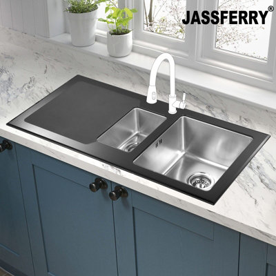 JASSFERRY Black Glass Top Kitchen Sink Stainless Steel One Half Bowl Left Hand Drainer 1000 X 500 mm DIY at B Q