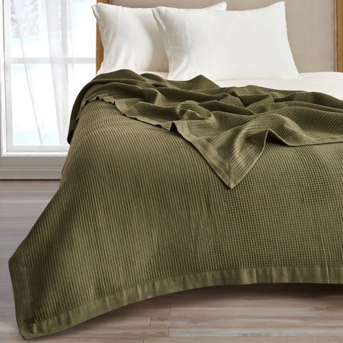100 Cotton Lightweight Waffle Weave Summer Bed Blanket Great Bay Home king Olive Green Target