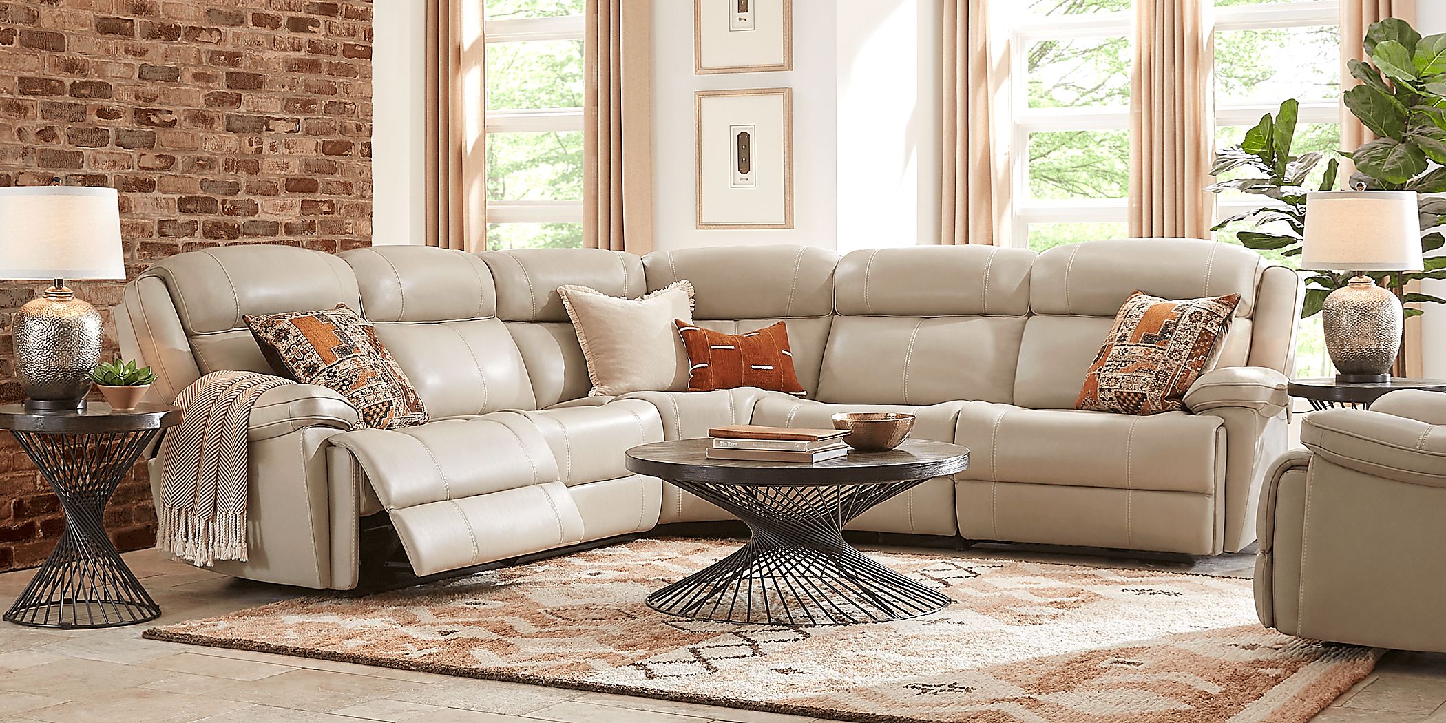 - tan leather sectional with recliner