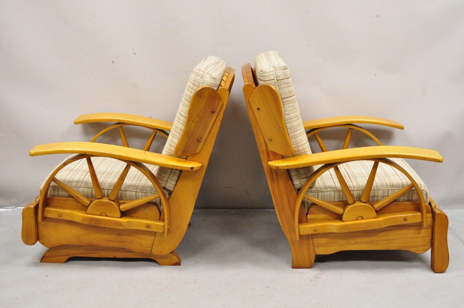 1950s Vintage Maple Wagon Wheel Western Ranch Lounge Chair and Platform Rocker Pair