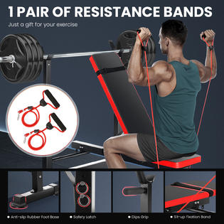 Dreamer Olympic Adjustable Bench Set w Squat Rack Pull Rope 600LB Weight Capacity Folding Full Body Workout Bench Press Set for Home Gym