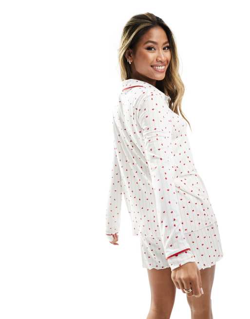 In The Style long sleeve shirt short pyjama set in heart print