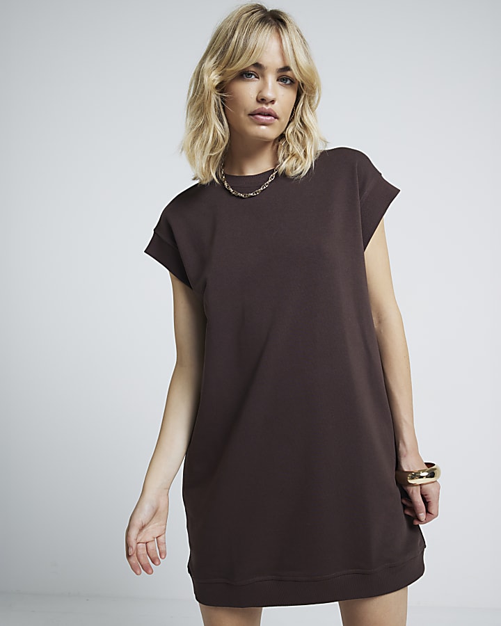 Brown sleeveless sweatshirt mini dress