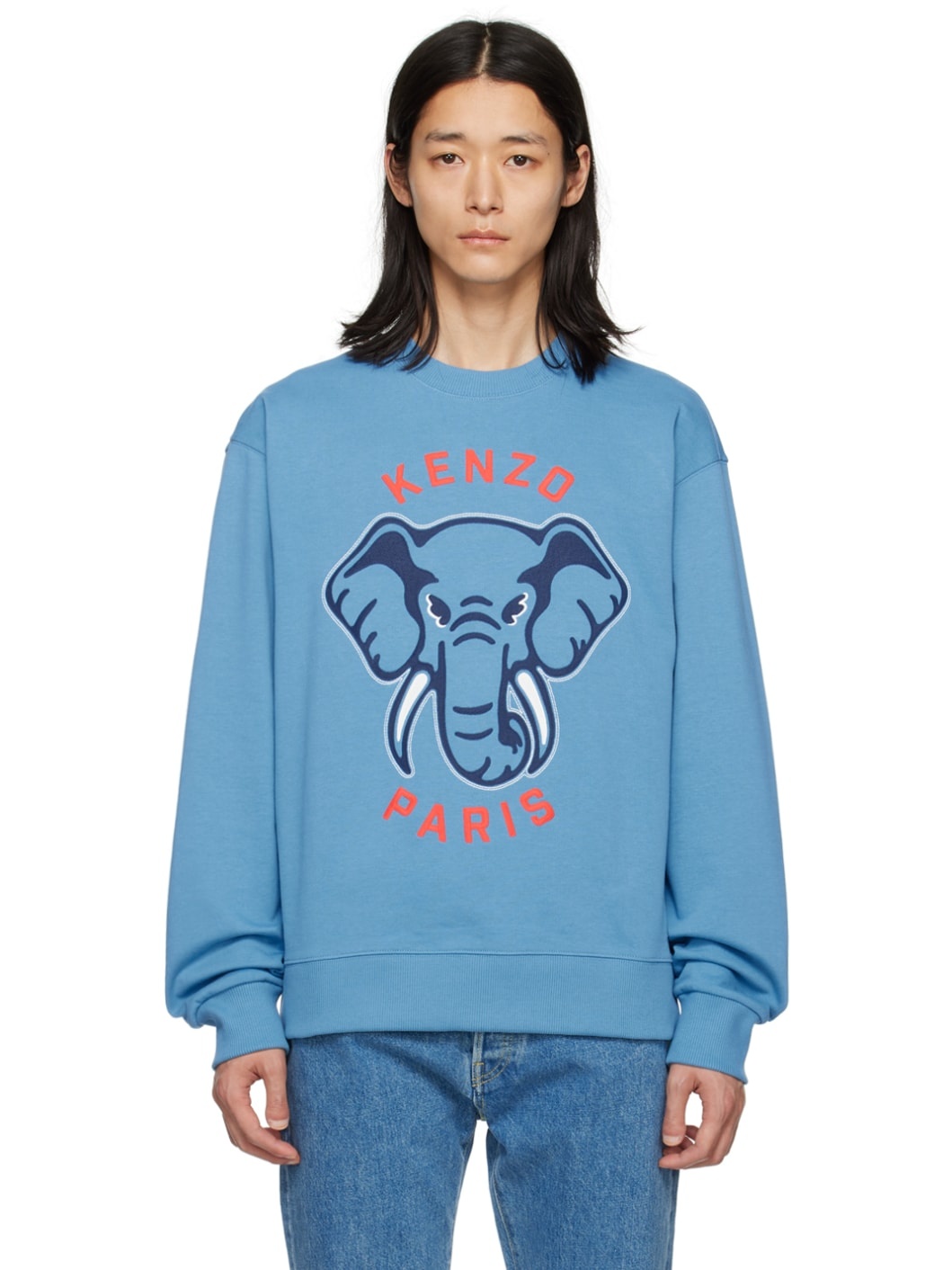 Kenzo Elephant embroidered Cotton Sweatshirt Blue FARFETCH OM