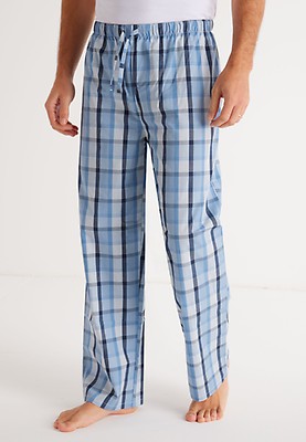 Mens 2pk Blue Check Stripe Woven Pyjama set Peacocks