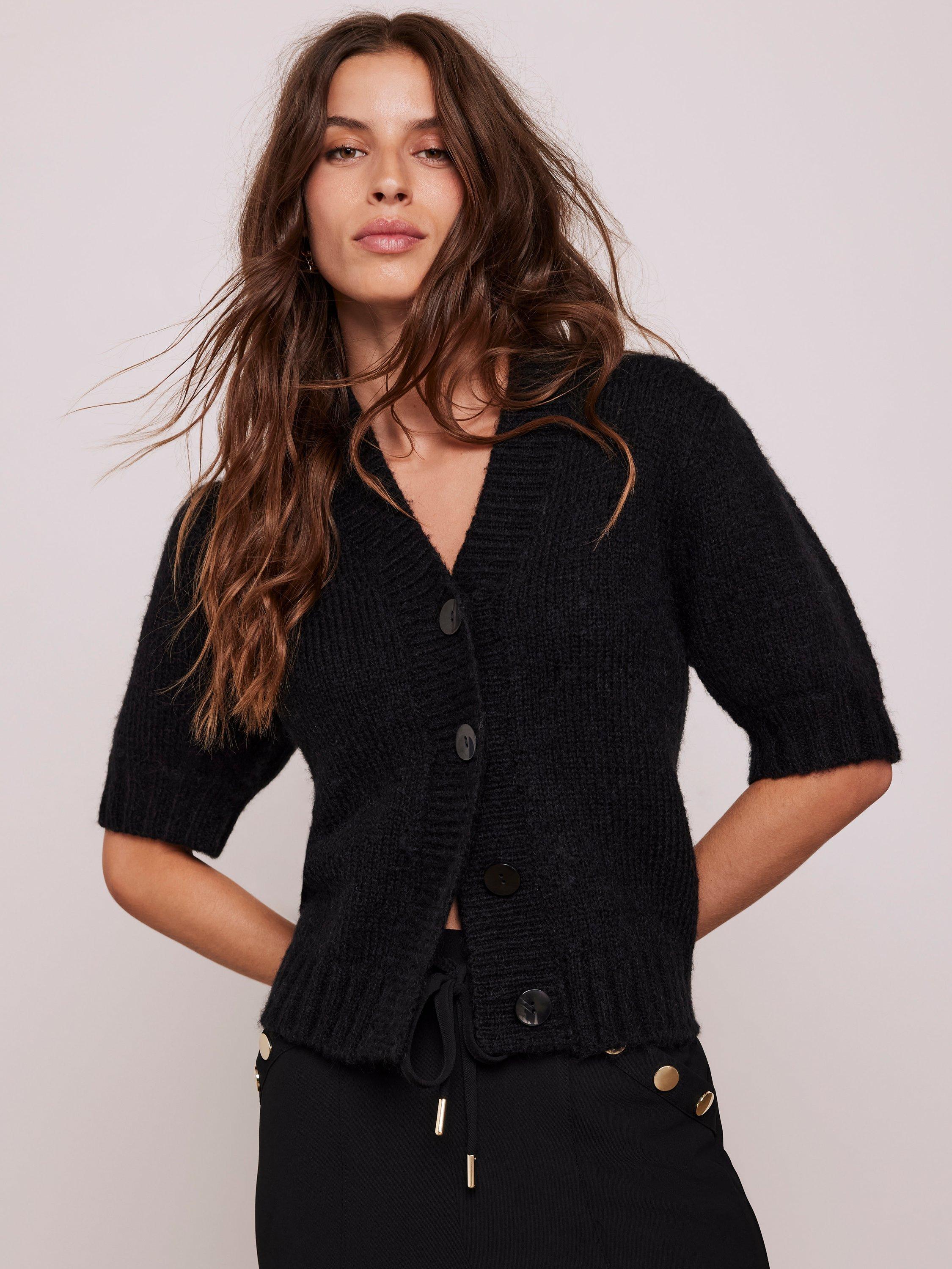 Mint Velvet Wool Blend Short Sleeve Cardigan Black