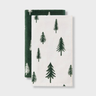 2pk Christmas Scattered Tree Hand Towels Green Wondershop Target