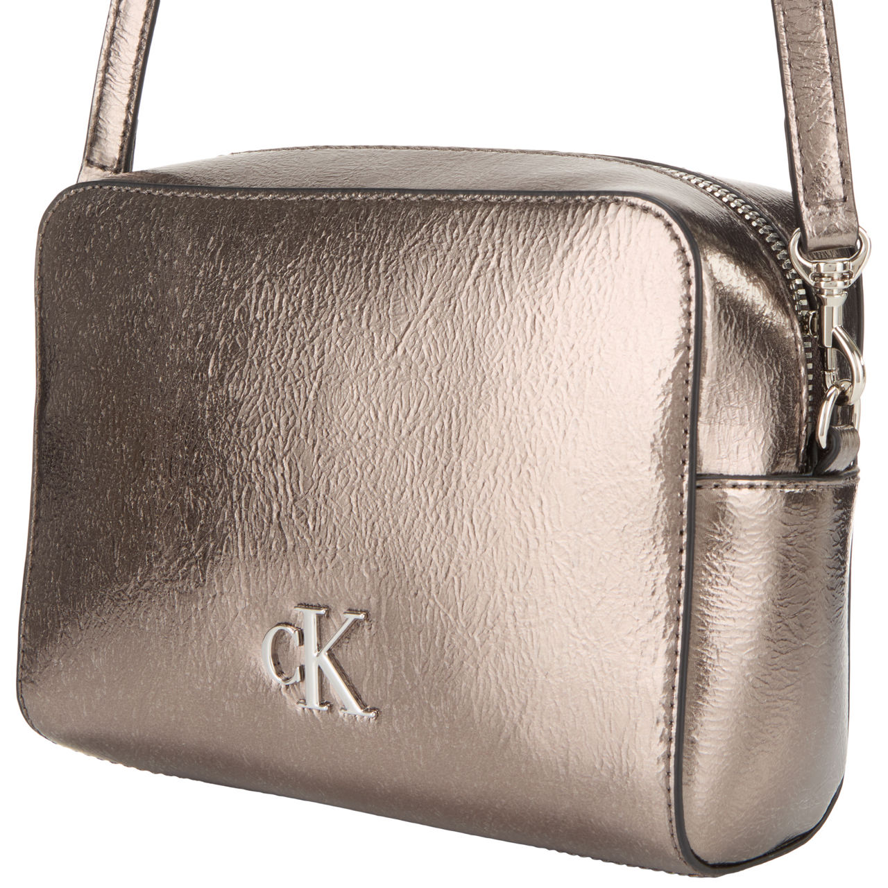 CALVIN KLEIN Monogram Metallic Crossbody Bag Gunmetal