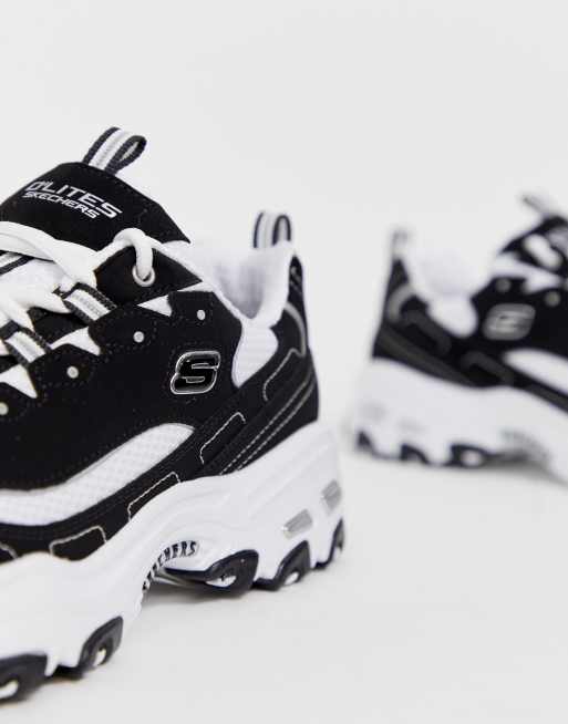 Zapatillas deportivas blancas y negras con suela gruesa D lites de Skechers