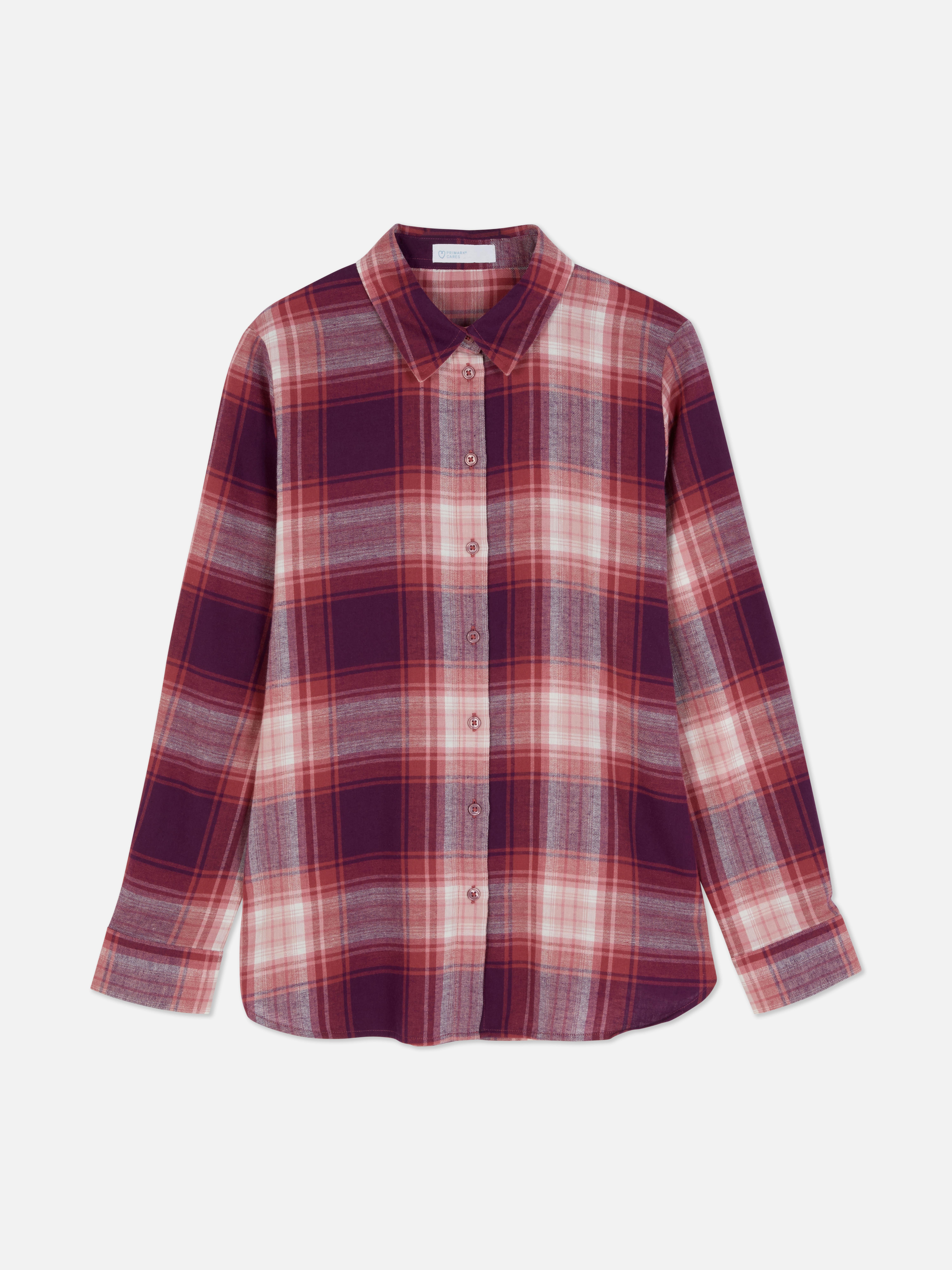 Camisa a cuadros con botones Burdeos Mujer Primark